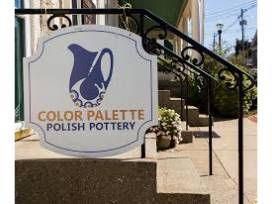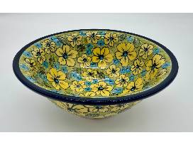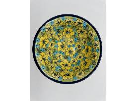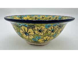 Brilliant yellow, greens, and sky blue with navy trim, this bowl will just make you happy!