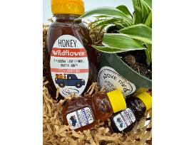 - This sweet little basket contains locally sourced honey - a large bottle of Wildflower honey, and 1 small bottle each of Lavendar and Elderberry flavors.