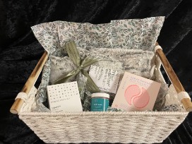 Pamper yourself with this OASE Day Spa Gift Basket! Includes a $100 Gift Certificate to OASE Day Spa - your oasis in the city, an Aromatherapy Lavender Spa Heated Wrap Blanket, Bath Salts, Rose nourishing eye gels pack of 5, and Aromatherapy candle