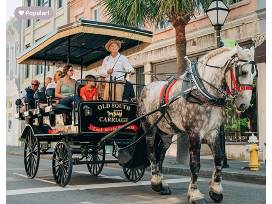 Explore Charleston's rich history with the city's friendliest guides and extraordinary horses with Old South Carriage Company! Choose between either a 1-Hour History Tour or a 40-Minute Haunted Tour for two!