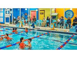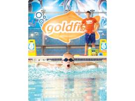 Goldfish Swim School features an indoor swimming pool heated to a tropical 90Ã'Ã'° year-round, state-of-the-art water purification system to keep the pools clean and sanitary, air-conditioned viewing gallery for parents, kid-friendly amenities like our hair drying station, swimsuit dryers & private changing rooms, our in-house Snack Shack snack bar and Treasure Island Pro Shop to grab a quick treat after swim lessons and find all the swim gear you need!