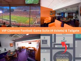 GO TIGERS! What an amazing experience for those Clemson Tiger Fans!! This VIP package includes four tickets to a box suite in the North Stands for the Home Game vs. Duke on November 1, 2025!. This Clemson Football Suite Package includes: