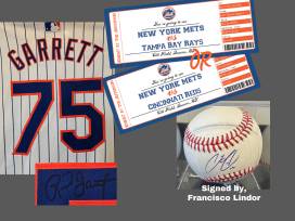 4 tickets to a Mets Saturday home game including on-field passes for Batting Practice. Either June 14 (Tampa Bay Rays) or July 19 ( Cincinnati Reds) and a Reed Garrett #75 signed jersey.