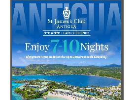 The winner of this certificate will receive Premium Family-Friendly accommodations for up to 3 rooms (double occupancy) for up to 10 nights per room. (valued up to $1,200 per room depending on dates of travel) at St. James's Club & Villas, Antigua.