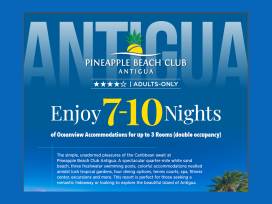 The winner of this Adults-Only certificate will receive Oceanview accommodations for up to 3 rooms (double occupancy) for up to 10 nights per room. (valued up to $1,050 per room depending on dates of travel) at Pineapple Beach Club.