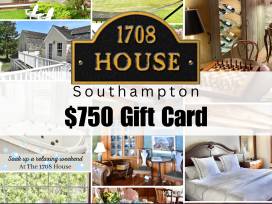 Experience the charm of Southampton with a $750 gift card to the Historic 1708 House, a beautifully restored boutique hotel that offers a unique blend of history and modern luxury. Enjoy a relaxing getaway, complete with elegant accommodations and exceptional service. This gift card provides the perfect opportunity to explore the scenic beauty and rich culture of the Hamptons.