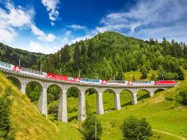 You'll then travel by train from Zermatt to St. Moritz in absolute luxury. The Glacier Express is renowned for being the slowest 'express' train in the world, the scenic journey takes about eight hours. The train makes its way through the astonishing massive Alps, through narrow valleys, tight curves, ninety-one tunnels and across two hundred and ninety-one bridges.