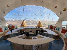 Just 20 minutes from the south entrance to Grand Canyon Park, you'll experience epic stargazing and witnessing spectacular sunrises and sunsets. Enjoy your stay in a Grand Canyon Family Sky Dome at Clear Sky Resorts with 1 queen bed on the lower floor and 1 queen plus 1 twin bed in the loft. The room is 760 sq. ft. with 16.5 foot ceilings, with a large panoramic view window, A/C, a private modern bathroom with a rain shower, and wifi. It's an authentic glamping experience that offers luxe private domes in a stunningly beautiful mountain range. Each guest will also receive access to the spectacular and exclusive Welcome Sky Dome lounge and a delicious food truck to purchase meals. Valid during regular season from April - October but can vary slightly from year to year.