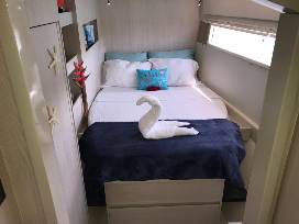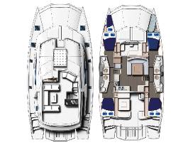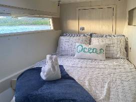 - 3 air-conditioned queen staterooms accommodate 6 people.