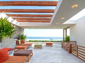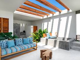 Discover contemporary luxury in the sprawling oceanfront Niku House estate in Oaxaca's Puerto Escondido. Bask in bliss with a private oceanfront infinity pool, two plunge pools, and stunning sunset terrace. Disconnect and unwind with daily housekeeping, cook service, and bartending included.