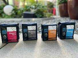Savor your next cup of Joe from one of four (4) 12-ounce bags of assorted blends from Antifascist Coffee!