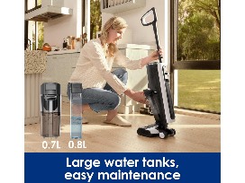 Clean wet or dry messes and tackle tough and sticky messes on hard floors with ease. Featuring Tineco's proprietary iLoop Smart Sensor Technology, it automatically adjusts suction, water flow, and brush roller speed to clean any and all messes. The exclusive FLOOR ONE S5 brush roller is designed to glide closely against baseboards and clean hard-to-reach corners. Your floors become completely dry and streak-free in minutes. The clean water tank is 30% larger than the last gen FLOOR ONE, allowing you to clean larger areas without interruption. The dual-tank system keeps clean and dirty water separate, so you're always cleaning with fresh water and solution. Never touch a dirty roller again. The hands-free, self-cleaning function automatically flushes the inner tubing and brush roller, for fast, mess-free maintenance. The pet hair strainer makes pet hair removal quick and easy for homes with pets. The 3-in-1 docking station stores and charges the unit for utmost convenience. Thank you, Jane & Rollie Golay and Jon & Nikki Bogenreif!