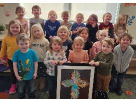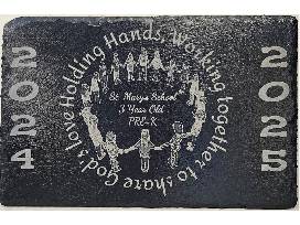 The 3 year old preschoolers have2 great items - A framed handprint cross and a class picture that is lasered on a piece of slate. How special to remember their very first year at St Mary's!