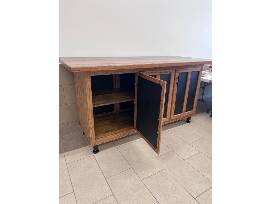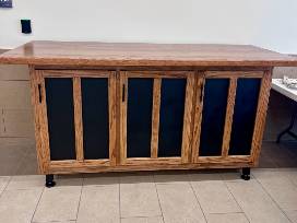 Al Miranowski has crafted up another stunner with this handmade island. It is 7 ft long x 39 inches wide x 42 inches high. Made of solid red oak, featuring 6 doors (black inserts can be changed out). Thank you, Al Miranowski!