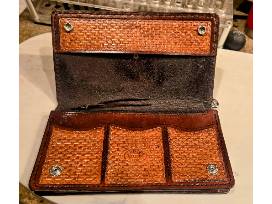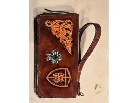 Gorgeous oversized Gibson leather wallet that was handmade and donated by Billie Jo Hinders.