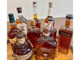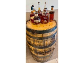 A Whiskey Barrel is topped with the ultimate Whiskey collection for any Whiskey lover. Included are: