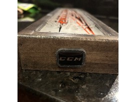 Cribbage is fun for everyone but synonymous with hockey road trips. Corey Meyer crafted this custom cribbage board out of a used goalie stick! Hefty pegs are neatly kept in the storage spot that's corked with the top of a CCM plug. Thank you, Corey and Shannon Meyer!