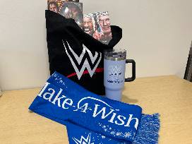 For the true WWE fan in your life, the three disc DVD set of Rock vs Cena -this Once In A Lifetime story of two transcendent superstars divided by polar opposite backgrounds, yet magnetized by equally larger-than-life personas. Also included are figurines of the popular stars: "The Rock," "Hit Man," "The Miz," Shawn Michaels, and "CM Punk." Also included some special Make-A-Wish/WWE swag - a water bottle and scarf.