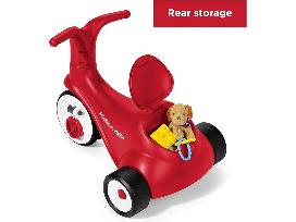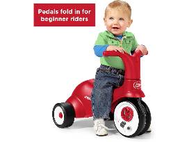 This Grow with Me scooter from Radio Flyer offers your toddler 2 RIDES IN 1: Toddlers start by using this as a ride-on toy, scooting from the seated position. Then it easily convert to a tricycle by flipping out the pedals. The scooter features a covered storage bin so favorite toys can join in on every adventure. For ages 1-3.