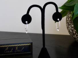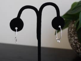 14kt white gold hoops with 3 diamond charms with 56 points of Diamonds valued at $2,400.00.
