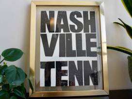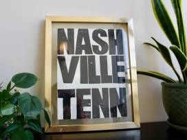 Two framed hand carved, linocut prints by Nashville artist Liz Adams.
