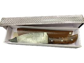 This package features a Barebones knife adorned with an exquisite decorative blade, complemented by a sleek leather case. This collection also includes two NoBox knives: a striking red double blade whittling knife and a versatile blue single-blade pocket knife.