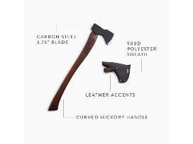 Inspired by iconic 19th-century forestry felling axes and built to deliver that perfect powerful swing. Lightweight 1055 carbon steel head and hand-sharpened 3.75" blade come together for smooth cutting precision. Designed to be super versatile, this premium axe does it all: clear limbs and brush, fell trees, drive a wedge, and process firewood. Durable 23.5" curved hickory handle is well-balanced, smooth, and comfortable in hand. Easily carry this axe from the backyard to the backcountry. Truly a high-quality tool that does the job that is required.