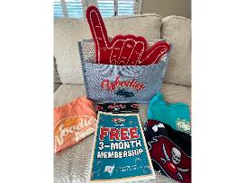 3 month membership to Woodies Wash Shack for self-service car washes, plus Tote bag, 2 Tank tops, 1 T-shirt, Air fresheners, Koozie and Foam hand.