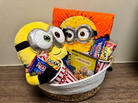 Get ready for the ultimate Minions movie night with this fun-filled package, including a cozy Minions pillow, a handcrafted 4x4 Minions quilt, and a Minions DVD. Complete the experience with popcorn, popcorn buckets, and plenty of candy for a night of laughs and comfort. Perfect for kids and fans of all ages, this bundle brings the joy of the Minions right to your home!