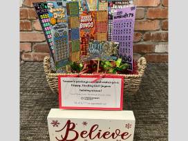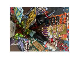 Strike it rich with this basket! Packed with anticipation and excitement, this enticing ensemble features an impressive selection of diverse scratch tickets with the opportunity to win over $4,000, a bottle of wine and a bottle of champagne!