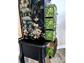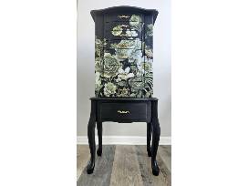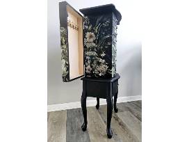 Jewelry armoire reimagined in a modern black floral motif by Recycled. Reimagined and Reloved.