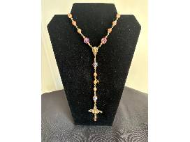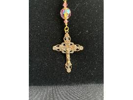 Hand-made, single decade chaplet. Great for your car or purse. Genuine fresh water pearls with Swarovski crystals and red bronze medals.