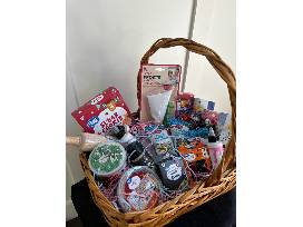 It's Cookie Time! Get your oven warmed up and get ready to bake and decorate! This basket includes 2 boxes sugar cookie mix, rolling pin, pastry bag with tips, tub of red icing with Christmas confetti, tub of fall sprinkle mix, star with red, green and white Christmas balls, spring mix, 4 edible glitter gels, box of 4 color writing icing, brown, red and white cake drip, Wilton icing bags with tips, 3 bags of superhero sprinkles and dazzle dust.