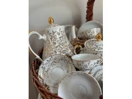 Antique Tea Service - Porcelain white and gold tea set. Contains: