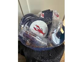 "Go set the table!" No issue here with two crawfish-themed tablecloths, 12 plates, and 20 cups with lids.