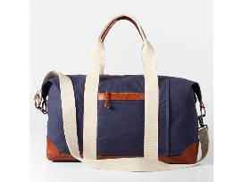 - Mark & Graham: Canvas & Leather Weekender Bag in navy.