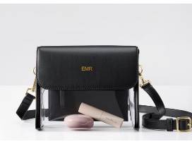 - Mark & Graham: Clear cross-body bag with black canvas strap.