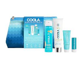 - Coola: Travel Set with Body Sunscreen Spray SPF 30, Face Sunscreen Lotion SPF 30, Liplux Lip Balm SPF 30, and Radical Recovery After Sun Lotion.