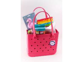 - Basically Bows & Bowties: Bogg pool bag includes a flamingo stress reliever toy, candy nail polish set, aloha hat, sequin tie dye cosmetic bag, rainbow jumbo pop it toy, bling2o goggles, rainbow bath balm set and happy face necklace.