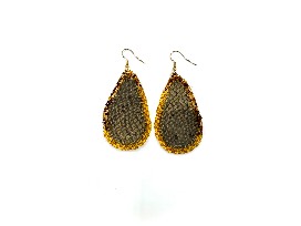 These Teardrop Yukon River Salmon Skin Earrings are made with teardrop-shaped salmon skin with size 11 beads. The Yukon river salmon have been on the decline for years, making material use rare. These earrings are made by Athabascan Artist Maureen Mayo.