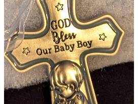 We've added His First Bible, and a cross to be blessed and hung above his crib.