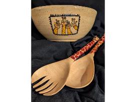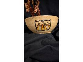Master potter, Sheila Cavanagh has handcrafted the bowl, and added this long-necked gang to adorn a display or serve a large salad! Imagine the happiness when you bring this out at your next big gathering!