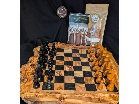 This beautiful large olive wood chess board from North Africa can be both something for display and play!