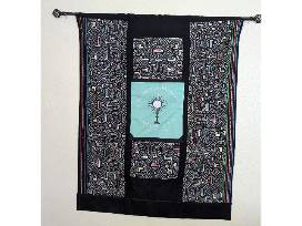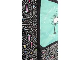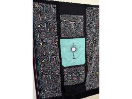 A one-of-a-kind wall hanging, bringing together our faith, the wisdom of Pope Benedict with a truly unique fabric made by the Shipibo of the Ucayali, the heart of Peru's Amazon rainforest. Shipibo fabrics are known for their geometric patterns, which are believed to represent the people's cosmology, mythology, and spiritual journey. The patterns are also thought to have healing properties and are used in ceremonies.