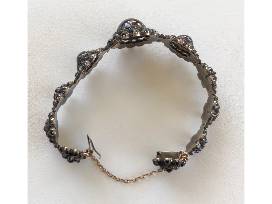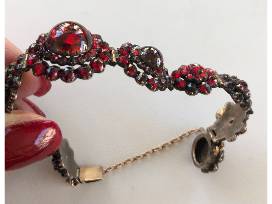1Circa late 1800's/early 1900's, this Bohemian garnet bracelet, Silver (gilt). measures approximately 6 1/2 inches long, and has a safety chain. Items made with the Bohemian garnets was extremely popular with Victorians.