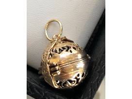 Antique 14k yellow gold Edwardian ball locket with a large ring on top that makes it possible to use as pendant or charm attached to a bracelet.