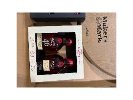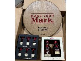 Enjoy a Maker's Mark roud wooden sign with six (6) Maker's Mark Bourbon Whiskey ornaments and a Limited Edition Maker's Mark Wood Finishing Series that includes two (2) 375ml Maker's Mark Cask Strength & Private Selection.
