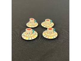This one-of-a-kind, 13-piece set includes 4 plates, 4 saucers, 4 cups and the unicorn teapot adorned with yellow, pink, purple and turquoise stripes and dots.