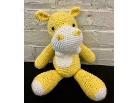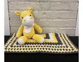Hand-knit stuffed animal and matching baby blanket made with love by a local fiber artist.