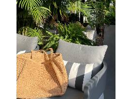 A custom, handmade quilt from local Diane Peterson will bring holiday spirit into your home. The 79"x90" quilt, in wintery blues and white, is perfect for embracing the beauty of winter while staying warm. Take home your quilt with a brand new bag. Whether you're off to the beach, planning a park picnic, or simply need a chic yet practical bag for everyday use, the Tracy Bag by NOFO Style is the perfect companion. This large, straw raffia tote is designed to carry it all - from towels, sunscreen, and bubbly, to your tablet, snacks, and a cozy blanket for a day in the sun. With its spacious interior and sturdy construction, it's built to handle all your essentials and more, while still looking effortlessly stylish.